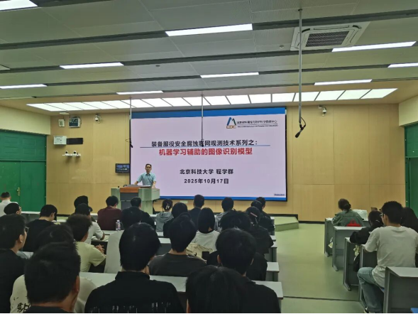 同日,一场聚焦机器学习辅助的图像识别模型的学术报告在汇南校区厚德楼206教室举办,由学院副院长林修洲主持,特邀北京科技大学程学群老师主讲。林修洲副院长开篇介绍了程学群老师的学术背景与研究成果。程学群老师从材料腐蚀行业痛点切入,指出数据收集—分析—应用闭环在腐蚀防控中的核心地位,强调实现装备服役安全腐蚀联网观测需突破高精尖腐蚀传感器研发与腐蚀数据挖掘建模两大关键技术。