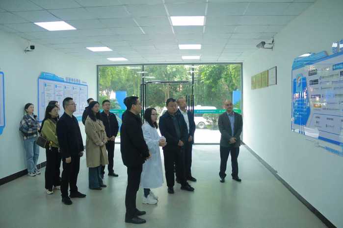 在我校化工学院相关负责人的引导下,卢修明副县长一行首先前往晨光高性能氟材料创新中心展厅考察。调研团队通过实地观摩、技术讲解、成果展示等方式,详细了解中心在高性能氟材料领域的核心技术突破、阶段性创新成果及中长期发展规划。参观过程中,大英县各部门领导对中心在技术研发攻坚、高层次人才培养、科研成果产业转化等方面的扎实成效给予高度评价,同时充分肯定了中心依托高校科研优势,在助力地方产业结构优化升级、推动区域经济高质量发展中发挥的重要支撑作用。