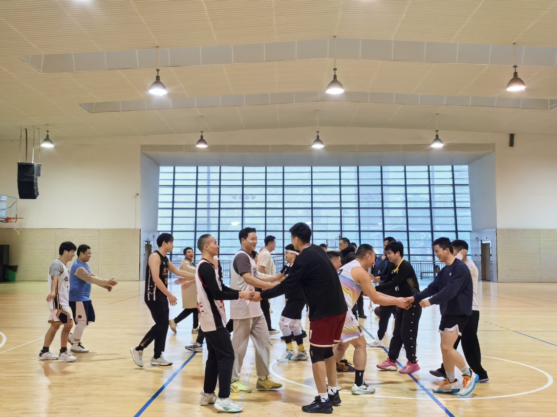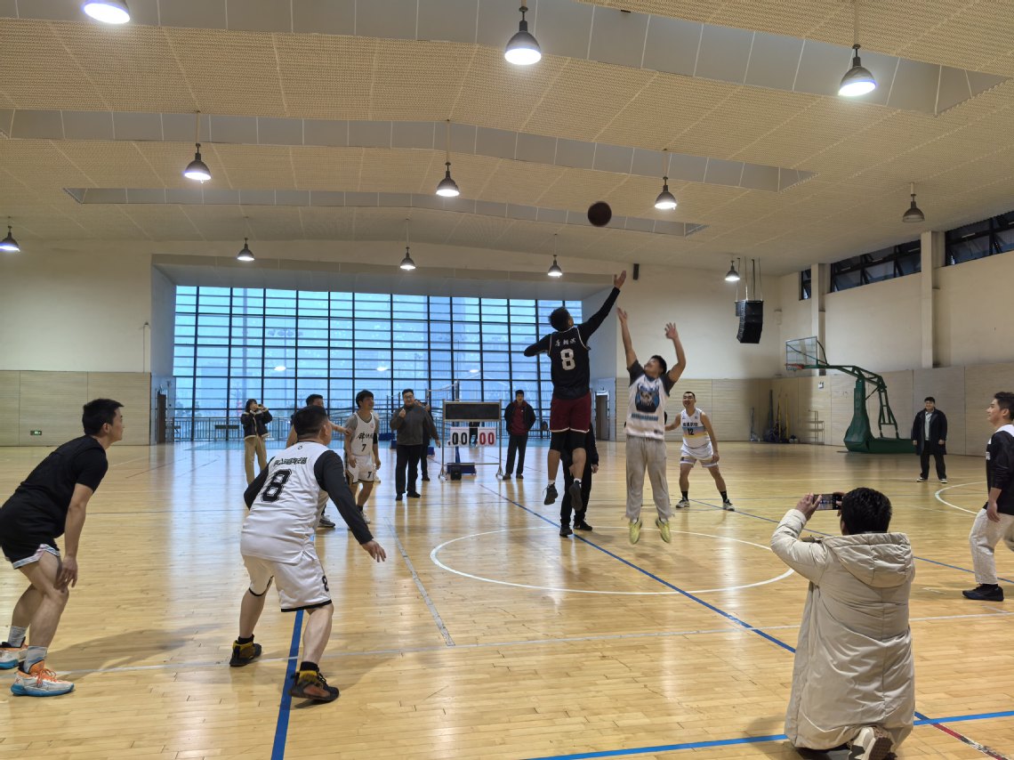 开赛哨响,院长罗洎抛球开赛,双方队员全力拼抢、默契配合,传球、突破、投篮一气呵成;赛场之上,攻防激烈却温情满满,昔日搭档配合依旧娴熟,汗水与呐喊交织,生动展现了轻化工人昂扬向上的精神风貌。此次赛事无关胜负、重在相聚,场边校友不时为精彩瞬间喝彩,间隙畅谈校园往事与近况,终场哨响后,双方队员握手相拥、合影留念,定格下这一珍贵相聚时刻。